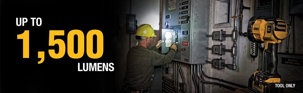 The DCL043 is a high-power LED spotlight designed to illuminate objects at a significant distance, making it distinct from standard “flood” work lights. It features a rugged design with a pivoting head and is capable of projecting light over 1,500 feet. As a “bare tool,” it is intended for use with existing DeWalt 20V MAX* batteries.