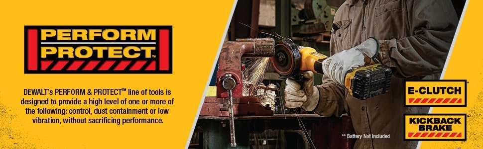 • Kickback Brake engages when a pinch, stall, or bind-up event is sensed and the electronic brake engages with maximum force to quickly stop the wheel, reduce the movement of the grinder and shut the grinder off.