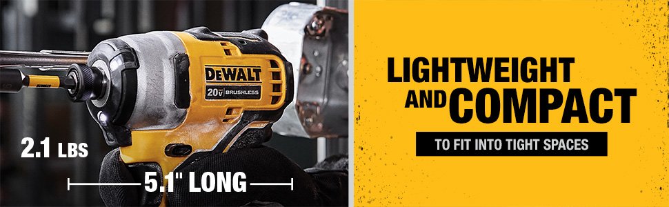 The DeWalt DCF809B ATOMIC 20V MAX Brushless Compact 1/4-in. Impact Driver* is part of DeWalt’s “Atomic Compact Series.” It is designed to be a lightweight, entry-level brushless tool that fits into tight spaces where larger impact drivers cannot. At only 5.1 inches in length, it is significantly shorter than older models, making it ideal for cabinetry and tight framing work.