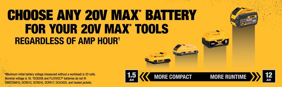 *Note: “20V MAX” refers to the maximum initial battery voltage (measured without a workload), which is 20 volts. Nominal voltage is 18 volts.